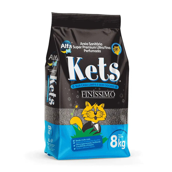 Areia Kets FiníssimoA Areia Higiênica Kets Finíssimo para gatos é um produto com o selo super premium de qualidade. Fabricada com grãos ultrafinos o produto se destaca pela retenção de odores e por deixar o ambiente levemente perfumado com fragrância herbal.Areia Kets Finíssimo é boa?Areia Kets Finíssimo é boa pois sua fórmula com minério de bentonita garante uma absorção até 30 vezes maior da urina dos felinos. Além disso o seu granulado não gruda nas patas do pet e forma torrões bem firmes o que evita o desperdício da areia do gato e gera economia para o tutor.Areia Kets Finíssimo: como usarA Areia Kets Finíssimo é muito fácil de usar. Coloque a areia de gato na caixa até atingir 6 a 7cm de altura. Dessa maneira você evita que o granulado grude no fundo e ajuda o seu animal de estimação a enterrar as fezes.Ao menos duas vezes por dia retire as fezes e os torrões com o auxílio de uma pá higiênica. Em seguida coloque em saco e faça o descarte junto ao lixo comum da casa. Se possível use luvas na hora de fazer a higienização e evite contato com vermes e parasitas presentes nos dejetos do animal.Importante: não faça o descarte da areia para gato Kets no vaso sanitário pois pode ocorrer entupimento do encanamento.Areia Kets do jeito que seu gato gostaA Kets possui uma linha completa de areias para gatos. Além da Areia Kets Finíssimo no pet shop online da você encontra as seguintes opções:Areia Higiênica Kets.Granulado Higiênico Kets Madeira para Gatos.Areia Higiênica Kets Premium.Granulado Higiênico Kets Criadores White.Areia Higiênica Kets Finíssimo.Areia Higiênica Kets Premium Perfumada.Areia Kets é um produto AlfaPetA Kets é uma areia sanitária para gatos produzida pela AlfaPet uma empresa brasileira com mais de 20 anos de experiência no mercado pet. A alta qualidade de seus produtos 100% naturais colocou a AlfaPet como uma das grandes indústrias do segmento do país.Areia Kets Finíssimo com preço baixo é na Está em busca da Areia Kets Finíssimo com preço baixo para oferecer o melhor para o seu animal de estimação por um valor que cabe no seu bolso? No pet shop online da você tem as melhores ofertas de caixas de areia e acessórios de higiene para gatos e ainda pode agendar a entrega do pedido com a Compra Programada. Aproveite!