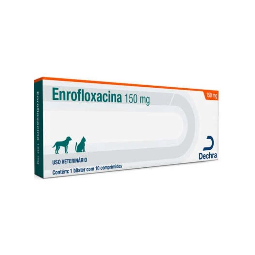 Enrofloxacina Dechra é um antibiótico da classe das fluoroquinolonas que possuem um largo espectro de ação sendo indicado para Cães e Gatos no para tratamento de um grande número de doenças infecciosas causadas por bactérias gram-positivas gram-negativas micoplasmas e espiroquetas sensíveis á enrofloxacina. é especialmente indicada nas infecções do sistema urinário especialmente aquelas causadas por Pseudomonas aeruginosa prostatites gastroenterite bacteriana. Formulação Enrofloxacina................. 150mg Excipiente q. S. P.............. 300mg Modo de Usar Administrar por via oral. Apresentação: 150mg Blister contendo 10 comprimidos cada acondicionados em cartuchos individuais.