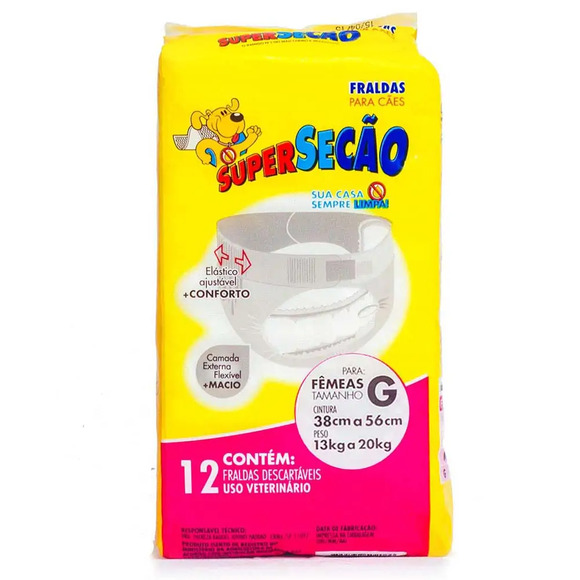 Fralda Descartável para Fêmea Super Secão Petix 12 unidades G