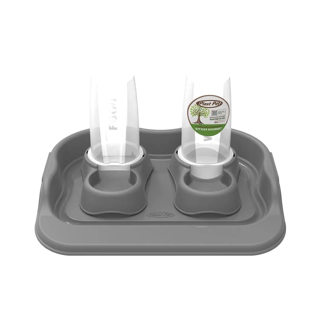 Kit Bebedouro E Comedouro Flex Gourmet Eco 650Ml C/ Bandeja - Taupe
