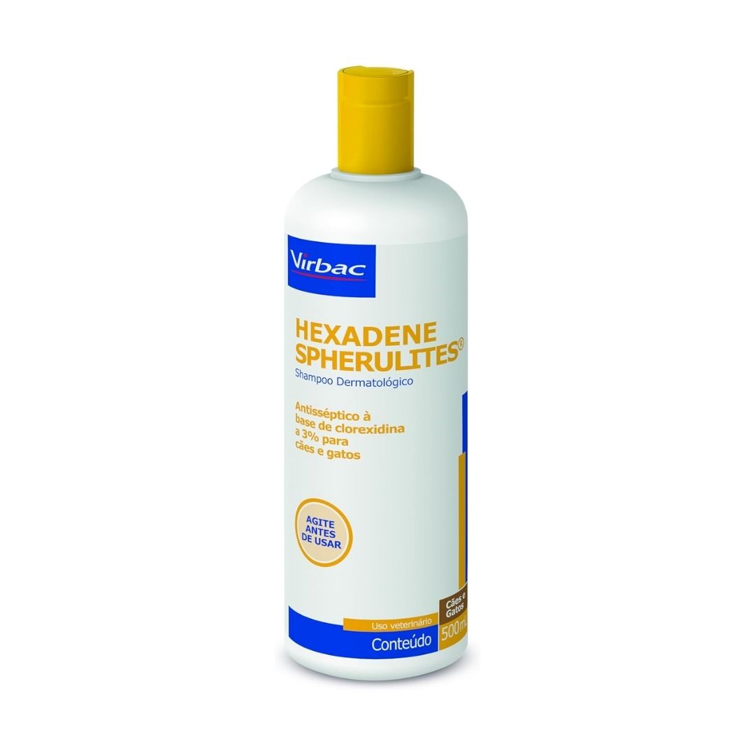 Shampoo Hexadene SpherulitesO Shampoo Hexadene Spherulites é um produto voltado a tratar e a prevenir infecções na pele causadas por bactérias e fungos.Com a tecnologia exclusiva da Spherulites o produto tem como base a clorexidina substância com atividade asséptica-desinfetante bastante utilizada pela Medicina Veterinária.Como aplicar o Hexadene?Um dos principais atrativos deste produto está na facilidade de sua aplicação. Afinal apesar de ter ação medicamentosa sua aplicação é muito parecida com a de um shampoo regular.Para aplicá-lo o tutor deve espalhar Hexadene Shampoo por todo o corpo do pet massageando a solução até que ela faça espuma. Após isso deve-se enxaguar e refazer o processo desta vez deixando o produto agir por 10 minutos até realizar um novo enxágue.Quanto à frequência e extensão do tratamento a recomendação geral é que o shampoo seja aplicado duas vezes por semana até que os sintomas desapareçam.Quais são os cuidados exigidos pelo produto?Como todo shampoo é preciso um cuidado especial com os olhos e as mucosas dos cães e gatos. Isso porque essa é uma área sensível e pode se irritar no contato com o produto.Outra questão importante para ficar atento é a possibilidade de surgimento de irritações na pele de animais hipersensíveis a alguns componentes do Hexadene.Ao perceber sintomas como vermelhidão o tutor deve interromper o tratamento e consultar um veterinário de confiança.Afinal o Shampoo Hexadene é bom para o meu pet?As infecções de pele causadas por bactérias e fungos podem afetar significativamente a qualidade de vida de cachorros e gatos.Quando não tratadas da maneira correta elas podem causar coceira intensa feridas e até mesmo queda de pelo.Daí vem a importância deste produto um dos produtos mais recomendados pelos veterinários para o combate das doenças dermatológicas desta natureza.Portanto para aqueles que perguntam se o Shampoo Hexadene é bom a resposta é: sem dúvida! Ele é um aliado para lá de eficiente para tratar e prevenir seu amigo peludo dessas situações incômodas.O que diz o Hexadene Shampoo em sua bula sobre restrições de aplicação em determinados animais?A bula do Hexadene deixa muito claro que sua destinação se limita apenas a cachorros e gatos. Sendo assim ele não deve ser aplicado em outras espécies de pets.Para o público que se destina no entanto o Hexadene não apresenta nenhuma restrição e pode ser administrado em cães e felinos idosos adultos ou filhotes.Hexadene Shampoo: qual é seu preço?O histórico de sucesso no tratamento de infecções de pele causadas por bactérias e fungos por si só faz do Hexadene um produto de ótimo custo-benefício. Afinal seus impactos positivos na qualidade de vida de cães e gatos com problemas dermatológicos são inquestionáveis.Além disso aqui na você encontra os melhores preços e ainda pode ganhar descontos exclusivos!Para comprar o Shampoo Hexadene Spherulites com desconto basta fazer uma Compra Programada . Escolha a frequência que você preferir o local da entrega e garanta 10% OFF.Ao se tornar um assinante você acumula pontos com o Amigo e pode trocar por descontos ou brindes exclusivos.