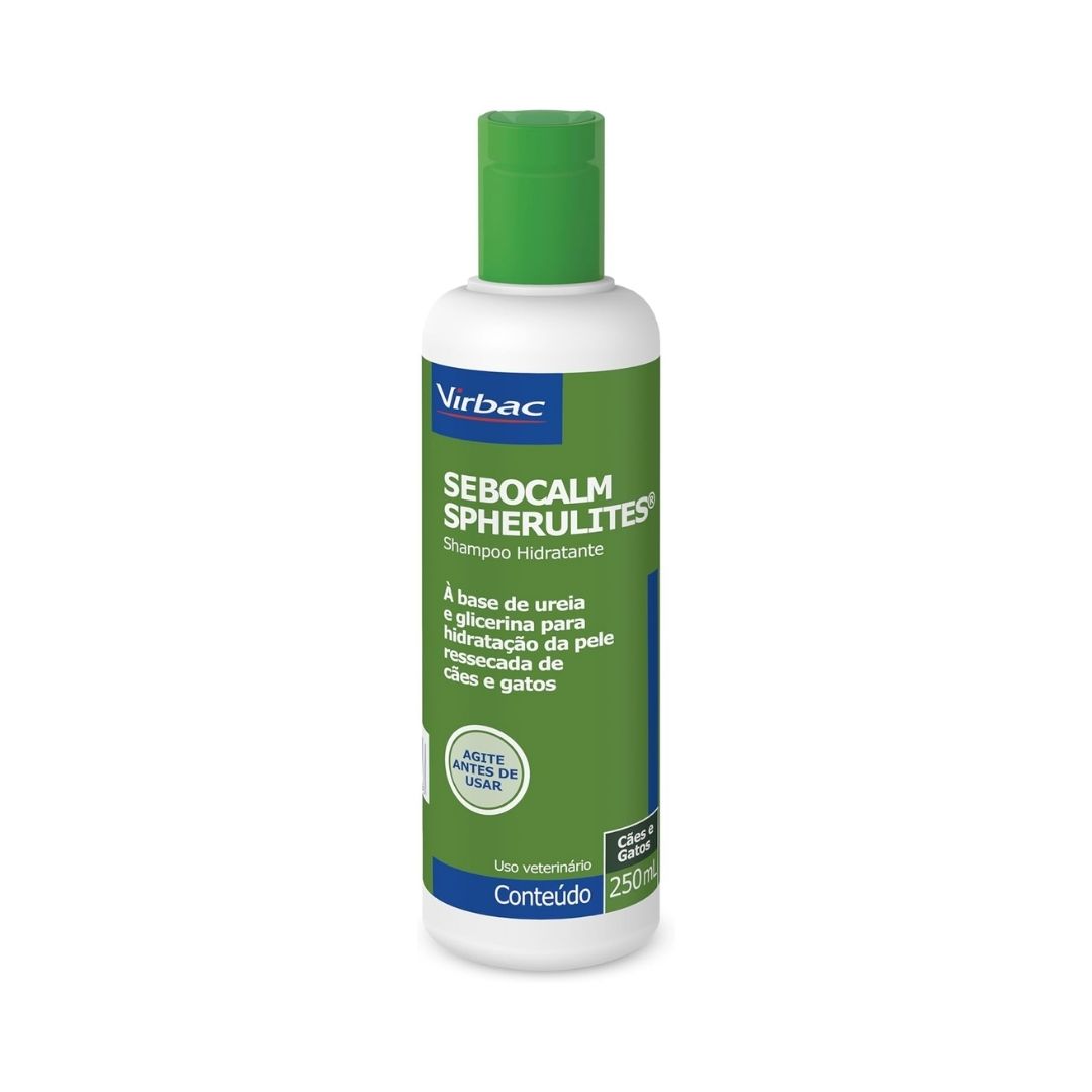 Sebocalm SpherulitesÉ indicado para uso em cães e gatos na limpeza da pele normal ou seca e como adjuvante na terapia das condições hiperqueratóticas como seborréia seca dermatites de contato dermatites relacionadas a insetos pulgas e carrapatos dermatites alérgicas não específicas piodermites e prurido idiopático. Para limpeza restauração e hidratação da pele.É hipoalergênica especialmente desenvolvida para uso em cães e gatos que apresentam sensibilidade aos produtos comuns.BenefíciosÚnico shampoo exclusivo para o tratamento da seborréia seca.Limpa e hidrata ao mesmo tempo.Maior eficáciaLiberação gradual e progressiva dos princípios ativos por até 10 dias.Pode ser usado em animais com histórico de sensibilidade aos shampoos comuns.CuidadosSomente para uso tópico em cães e gatos.Em caso de contato com os olhos lavá-los abundantemente com água.Em caso de intolerância cutânea diminuir a freqüência das aplicações ou interrompê-las totalmente.Usar luvas protetoras para aplicação.ComposiçãoCada 100 mL contém:Uréia: 488 gGlicerina: 100 gMicrocápsulas: 058 gVeículo q.s.p: 10000 mL